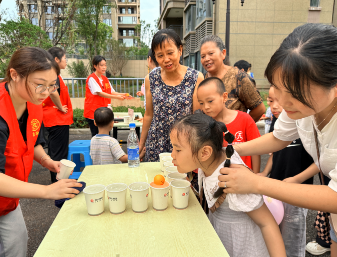 活动现场设置了套圈、气球涂鸦、运乒乓球、乒乓球过山车、亲子表演等趣味游戏,小区居民积极参与游戏互动,个个都乐在其中,现场洋溢着欢乐和谐的氛围。其中亲子表演环节更是将活动推向高潮,孩子与家长亲密无间的表演,引得大家拍手称赞,在亲子互动时刻,中秋团圆的意义被无限地放大。