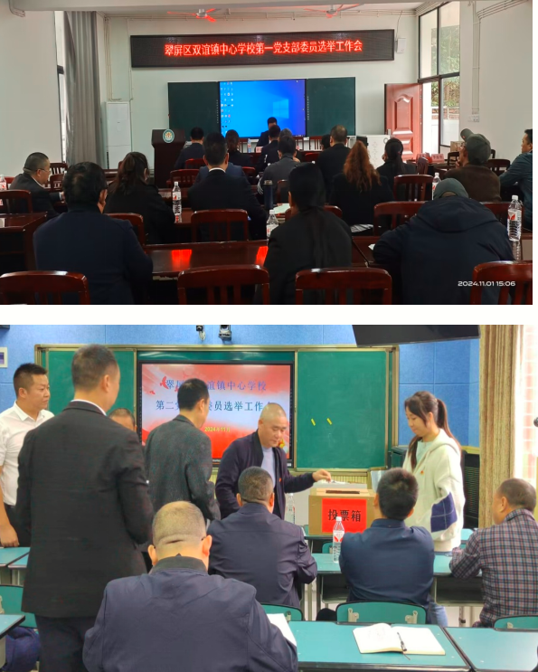 2024年11月1日,翠屏区双谊镇中心学校召开第四季度党员大会,全校在职党员和退休党员参加会议,校长李治华应邀列席会议。本次党员大会分为三个阶段,第一阶段是书记讲党课,第二阶段是组织党总支委员会换届选举,第三阶段是组织下属各党支部委员会选举。