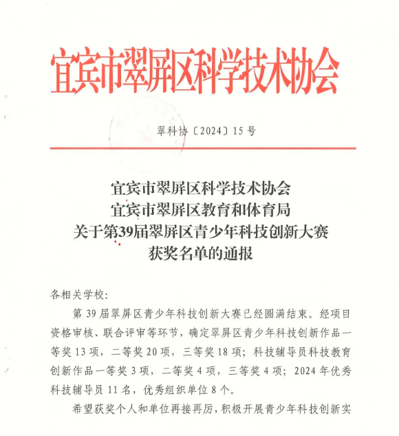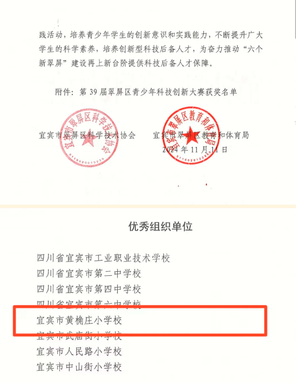 辛勤耕耘硕果累累,滴滴汗水伴随进步。宜宾市黄桷庄小学校在第39届翠屏区青少年科技创新大赛中收获佳绩!我们砥砺前行,用辛勤和努力接下来,让我们一起见证成长与收获!