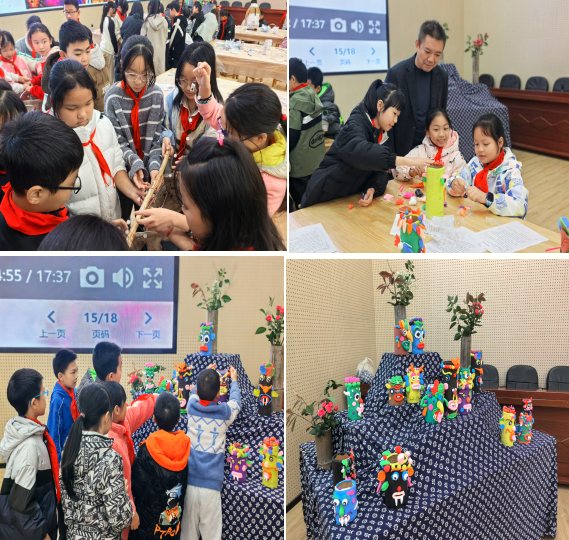 竹制手工,传统之美;匠心独运,传承文化。来自四川省杨迅名师工作室廖正林工作站的教师梁青梅执教《有趣的竹筒》手工课,从了解长宁的竹文化到竹工艺品的制作过程,再到学习制作形态各异的造型,孩子们在梁老师的带领下,充分发挥想象力和动手能力,想一想、捏一捏、闻一闻、搓线条、造个型,各种各样有趣的竹筒工艺品就这样诞生了。