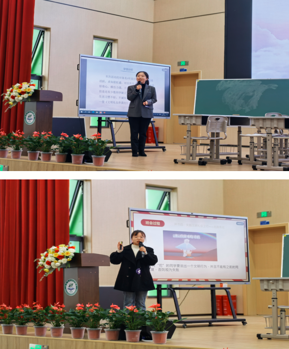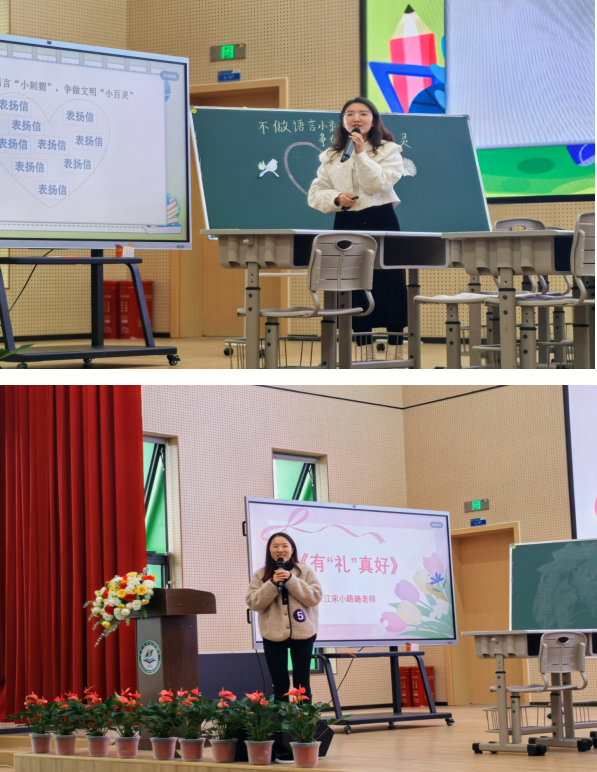 比赛第一阶段,六名选手分别进行现场说课,选手们围绕文明礼仪这一主题,结合班级实际情况,设计了六节富有深度和创新的微班会课,选手们精神饱满,说课自然流畅,语音语调纯正精准,肢体语言生动活泼,展现了良好的专业素养和教学基本功。