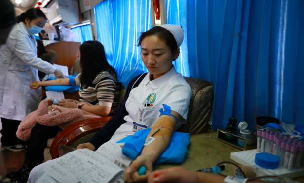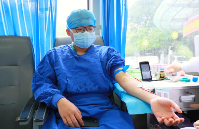 殷红的热血,也是殷红的爱!在二医院工会的组织号召下,全院职工积极响应。采血现场,血站工作人员引导大家有序地排好队伍。“您好,请在这里填表”“您好,请到这边测血型……”蜿蜒的队伍不只是初冬一道最美的风景,更是生命的延长线。在众多献血者中,急诊科护士长杨永平的身影格外引人注意,因为每一次医院组织献血,他都不会缺席,目前已累计献血6000多毫升。他在献血时表示:“在工作中,常常会遇到车祸伤、大出血的病人,身为一名急诊科护士,我更能够体会到血液作为‘生命之源’的意义。”平日里他们与时间赛跑,今天他们为生命护航!来自呼吸与危重症医学科的护师刑琰琰在献完血后说道:“作为ICU的一名医务人员,我们每天在救治患者的一线,每一秒都关乎生死,只要及时用血,很多生命都是有机会救回来的,所以更能切身感受到血液对于重症患者、大型手术患者的重要性,我也想以献血形式为他们提供帮助”。工会干部李雪梅表示:“无偿献血作为构建新型医患关系的桥梁和纽带,得到了广大医务工作者积极响应。今年以来,医院先后开展了两次大规模的献血活动,676名干部职工踊跃参与其中。除团体献血之外,不少医护人员还定期主动到血站的爱心献血屋参加献血”。