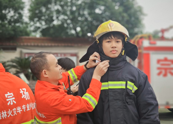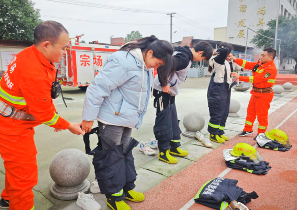 消防衣穿脱体验:学生亲身体验了消防衣的穿脱过程,通过实际操作,学生有机会学习如何正确穿脱消防衣,有助于学生了解消防装备的使用,增强了对消防工作的认识。