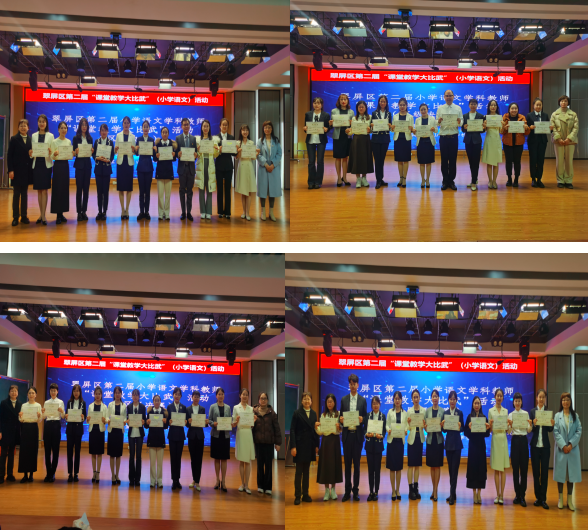 踔厉奋进教研路,硕果累累满枝头。比赛结束,来自中山街小学校的曾玉静、雷江、王丹团队和人民路、三江学校的周云姣、姜楠、郭操团队分别荣获团体综合一等奖和教学设计一等奖。来自中山街小学校的王丹和人民路小学、三江学校团队的吴真慧荣获课堂展示一等奖,来自中山街小学校的雷江和人民路小学、三江学校团队的杜娟荣获反思性说课一等奖,来自中山街小学校的刘洋、周艳和来自人民路小学的余勤、黄秀敏被评为优秀指导教师。