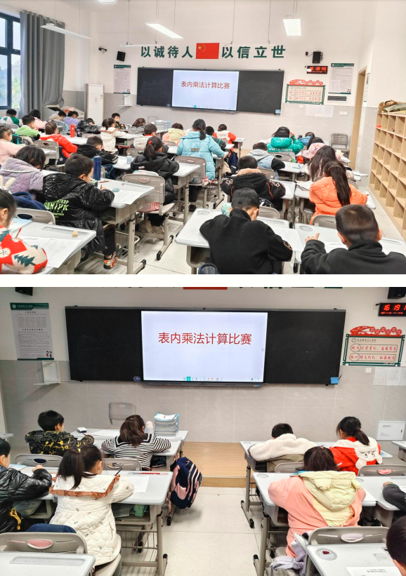 九九乘法口诀是数学计算和学习的基础。熟练背诵乘法口诀,能为小学生数学学习打下坚实的基础。为了培养二年级学生良好的乘除法口算能力,提高口算的速度,增强学生的运算能力,2024年11月26日,宋家镇中心小学校二年级开展了乘法口诀专项比赛活动。