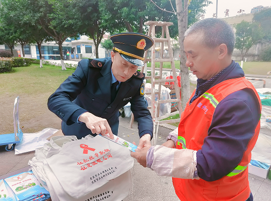 12月1-6日,宜宾市卫生执法人员纷纷走上街头,在人口集中的公园、广场、车站等公共场所悬挂宣传标语,发放艾滋病防治宣传折页、宣传用品,向市民讲解艾滋病防控常识。卫生执法监督人员还进入酒店、歌舞厅、车站、诊所等重点场所,查看艾滋病防治、安全套发放设施设置、免费安全套摆放、登记等情况,并向检查单位赠送宣传折页、宣传用品。