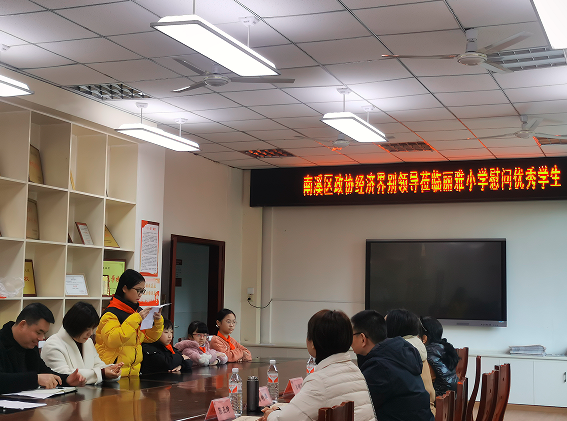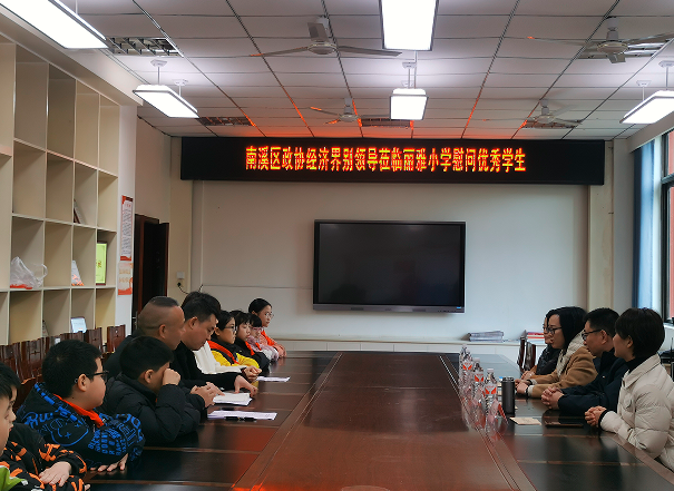 2024年12月6日下午3时,南溪区政协经济界别委员莅临丽雅小学校慰问八名优秀学生。