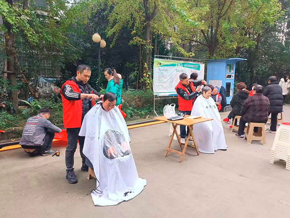 与此同时,义剪区域也围满了居民。理发师们手法娴熟,为居民们精心修剪头发。在居民们享受免费理发服务的同时,义剪志愿者们也不忘宣传宪法。他们用通俗易懂的语言向居民们讲述宪法在日常生活中的重要性,例如宪法对劳动者权益的保护、对家庭婚姻关系的规范等,使居民们在轻松愉快的氛围中接受了宪法教育。