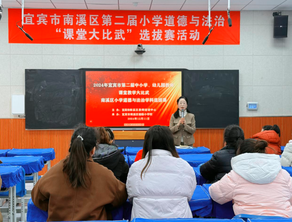 12月11日,宜宾市南溪区师训中心在南溪区福临小学校举办了“南溪区第二届小学道德与法治课堂大比武选拔赛活动”。