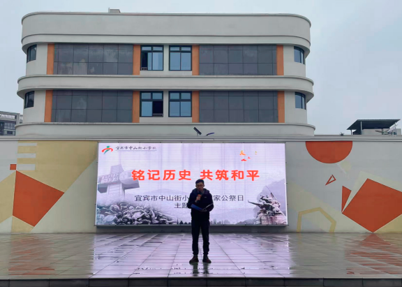 每年的12月13日是国家公祭日,在这个庄严的日子里,我们的心灵再次汇聚于历史的长河,共同缅怀遇难同胞,誓不忘国耻,矢志振兴中华。12月13日上午,宜宾市中山街小学校四个校区通过红领巾广播站分别举行了“铭记历史,共筑和平”主题宣讲及默哀活动。全校师生全体肃立,对南京大屠杀遇难同胞以及所有在日本侵华战争中被杀戮的死难者表示最沉痛的哀思。
