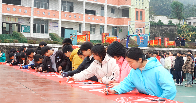 为进一步加强学校学生思想道德建设,帮助学生提高道德意识、增强道德修养、规范道德行为,加强诚信意识、责任意识。以告别思想不文明、语言不文明、行动不文明为主旨,运用倡议、宣传、行动等多种形式,营造有利于学生自身健康成长的氛围;使学生在自觉参与中受到潜移默化的影响,养成良好的道德习惯。2024年12月11日,南溪五中举行了“告别不文明行为”集体签名活动。