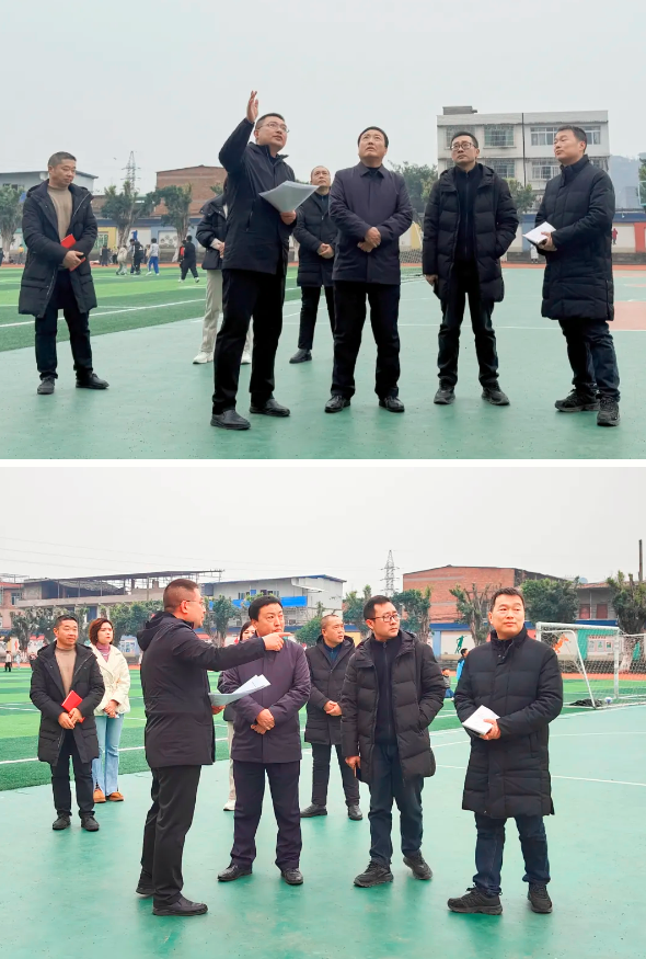 12月18日下午,区委教育工委副书记,区教育体育局党组书记、局长熊超,区教育体育局党组成员、副局长罗聪,区教育体育局计财股股长黄曹一行到宜宾市黄桷庄小学校调研学校项目建设、教育教学等工作。