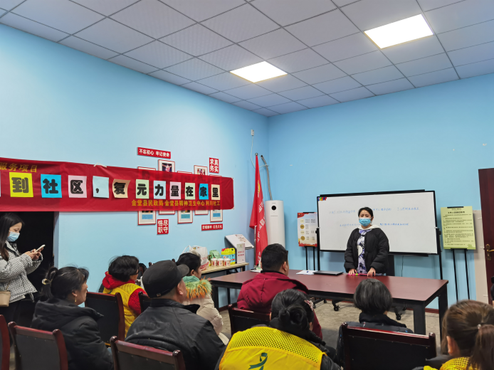 为提升金堂县精神障碍患者社区康复质量和水平,满足精神障碍患者多层次、多样化服务需求,2024年1月18日,金堂县第四人民医院受成都市利川社会工作服务中心邀请与赵镇社区卫生服务中心一起,在金堂县河湾社区党群服务中心,展开“康复知识到社区,复元力量在家里”的严重精神障碍在管患者社区康复活动。