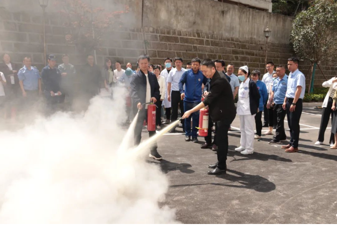 接着,简阳市消防大队禾丰镇救援站沈勇等专业人员为全院职工进行了消防安全培训,并实地为大家开展了消防应急演练。