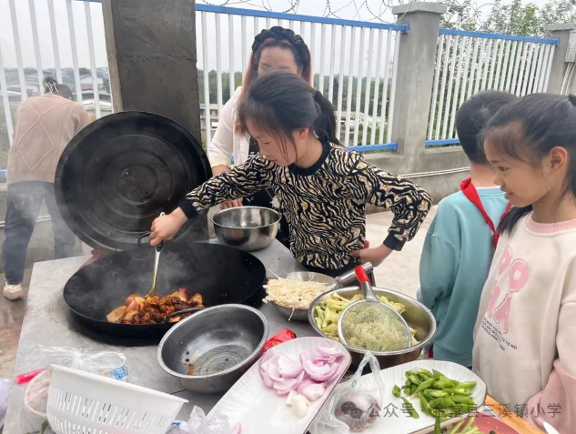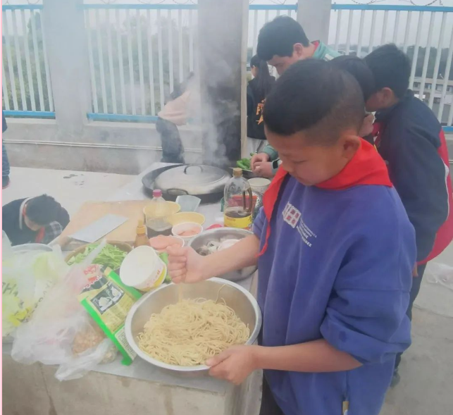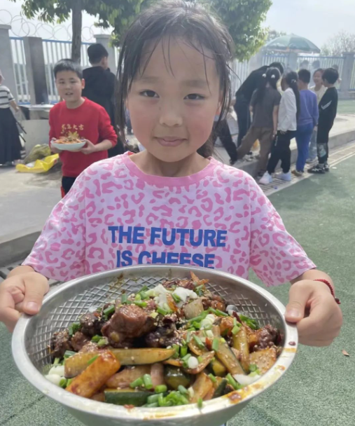 三到六年级的小厨神们放下了笔杆子,拿起了锅铲子,团结合作,烹饪出一道道色香味俱全的菜品,在烟火气中感受劳动的技与美。