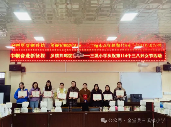 在初春美好的三月,第114个“三八”国际妇女节到来之时,为引领校内广大女教职工振奋精神,推进我校教育教学质量发展,3月8日,金堂县三溪镇小学开展了“巾帼奋进新征程 乡情共鸣绽芳华”“三八”节主题庆祝活动。此次庆祝活动分为两部分进行。