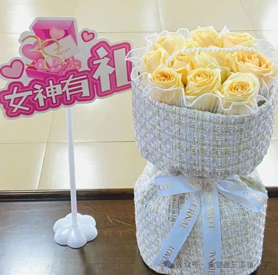 支部书记、工会主席、行政代表向参加座谈会的女教师送祝福