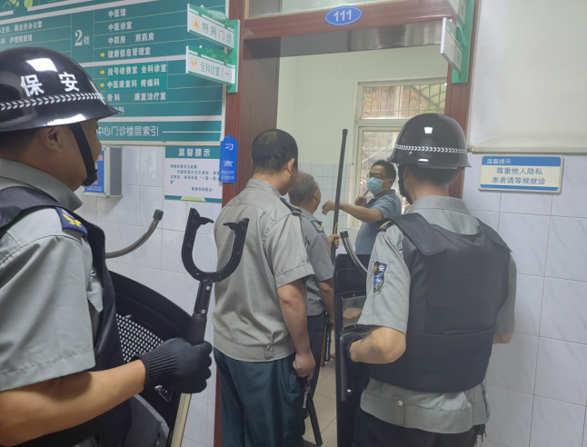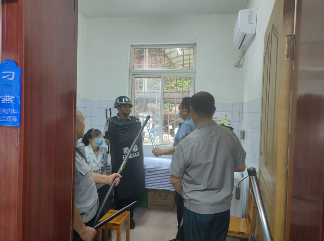 为进一步加强医院的安全保卫工作,切实提高医务人员防范暴力伤医和保安人员反恐防暴的反应速度和应急处置能力,6月27日,简阳空分医院组织开展了反恐防暴应急演练。