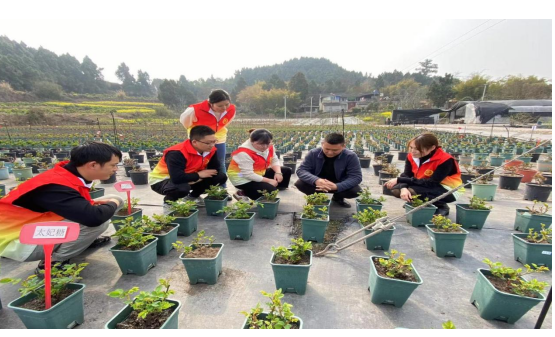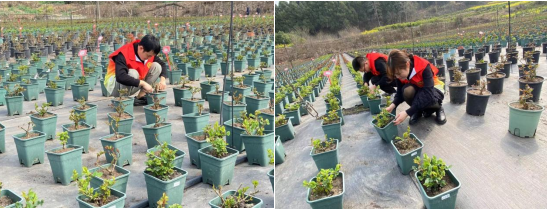 随后,志愿者们前往平武镇宜然花卉基地,了解他们复工复产的情况。花卉基地负责人吴雄介绍说:“基地花苗销售以抖音直播销售为主,去年天干、疫情影响导致销售情况不是很理想。今年基地在当地政府的大力支持下,做了充分的准备,复工复产情况良好。”