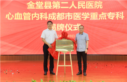 2024年7月9日下午,金堂县第二人民医院在博学厅进行基层版国家胸痛中心和心血管内科成都市医学重点专科集中揭牌仪式。党委书记张俊,党委副书记、院长肖祥军等党政领导班子出席。