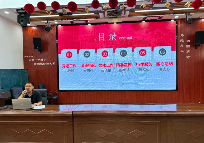 聂绪臻副书记从党建工作不放松、师德师风守初心、文秘工作高质量、精准宣传塑新形、师生服务显精心、暖心活动聚人心等六个方面汇报了行政后勤服务中心本期的收获。他表示服务中心将一如既往全力做好后勤服务,为建设品质至佳、精致至佳而不懈努力!