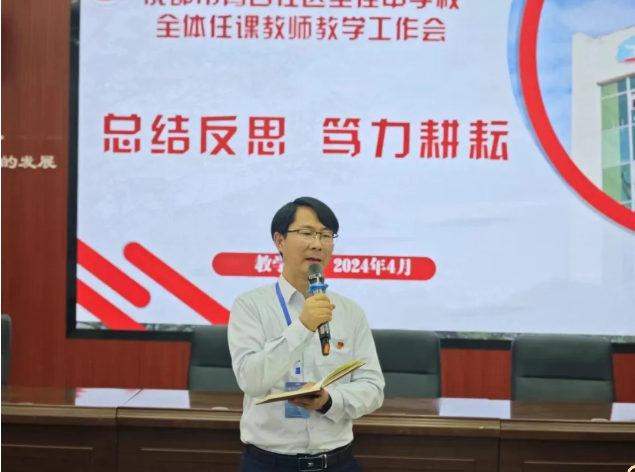 为进一步提高教学质量,共同探讨教育策略,推动教育质量稳步提升。2024年4月26日下午,至佳中学全体任课教师教学工作会在阶梯教室召开。会议由教学中心主任郭怡主持,校长陈兵、副校长张宝图及全校任课教师参会。