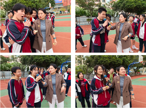 曾老师引导同学们一起高呼自己的名字,喊出自己的梦想,最后在全场一起高呼三声“加油”声中结束。