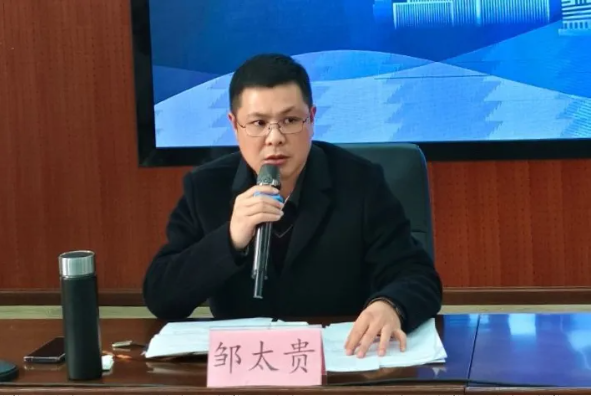 第二部分是初2021级期末效能监测分析工作会,会议在我校阶梯教室进行,由区教育局普通教育科邹太贵科长主持。