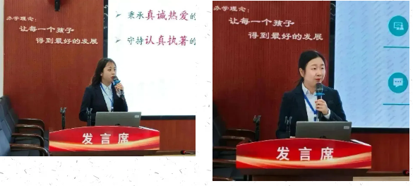 李坩镁老师由点到面再发展为线,向参会人员介绍了个性多元、合作共赢、潜力成长三方面的年级组管理和发展理念。陈俊老师则从教研、教学、教师三个层面,介绍了备课组的发展方向与目标。