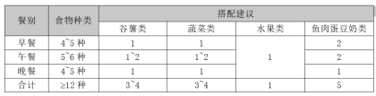 食物多样能保证营养丰富和充足,每餐准备的饭菜最好都能按类别分到格子里,不要空下任何一格。可以参考下面的搭配建议,先练习起来。