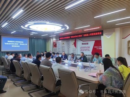 4月15—16日,西南医科大学附属医院内科党总书记阮德胜带队一行到我院开展校地合作对口帮扶工作,并召开座谈会。广元市发改委副主任、苍溪县结对帮扶工作队领队陈云强,县委组织部三级调研员徐继斌,县卫健局党组书记、局长奉猛,院班子成员等参加座谈。