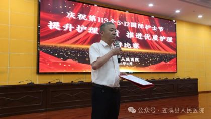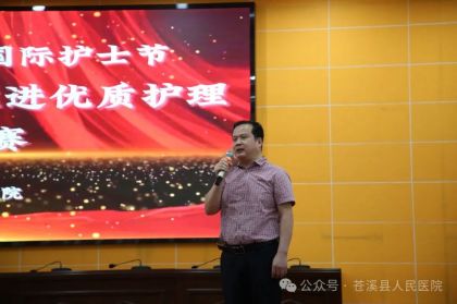 党委书记范怀卫作总结讲话。他首先对全院护理同志致以节日祝福,并对参赛选手的精彩表现给予高度评价。他指出,新院已投入使用,新院新面貌,服务环境有了新的变化,也需要我们对服务理念有新认识,服务行为有新气象,服务能力有新突破,服务质量有新提高;他要求,各科室要以本次比赛为契机,在今后的工作中持续关注患者需求,不断提升护理服务质量,做有温度的、有情怀的护理人,为患者提供放心和舒心的服务!