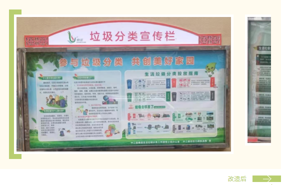 “参与垃圾分类,共创美好家园”等宣教内容张贴在大西街、小南街和朝阳南路社区管理区域的外墙上,朝东社区办公区处设置了两块宣教展板,墙面和展板上的可回收物、其他垃圾、厨余垃圾、有害垃圾宣传画简单生动,让居民一目了然;朝北社区的墙面上“垃圾分一分 环境美十分”融合了更多垃圾分类知识画报,让垃圾分类知识和意识走入更多居民的眼里和心里。