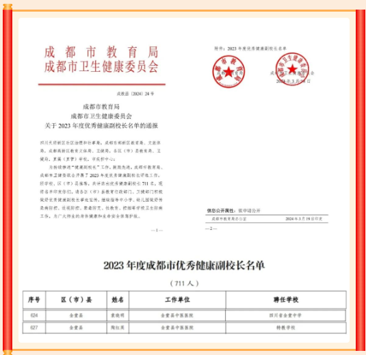 杨柳吐翠,春风报喜。3月20日,金堂县中医医院获评“金堂县2023年度卫生健康先进单位”。与此同时,医院职工袁晓明、陶红英分别获评“成都市2023年度优秀健康副校长”称号。