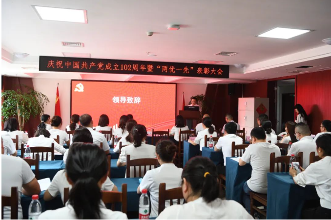 6月29日下午,金堂县中医医院党委组织召开了以“不忘初心践使命 踔厉奋发新征程”为主题的庆祝中国共产党成立102周年暨“两优一先”表彰大会。医院党委书记文豪、院长肖兵及党政领导班子、党员干部共80余人出席会议。