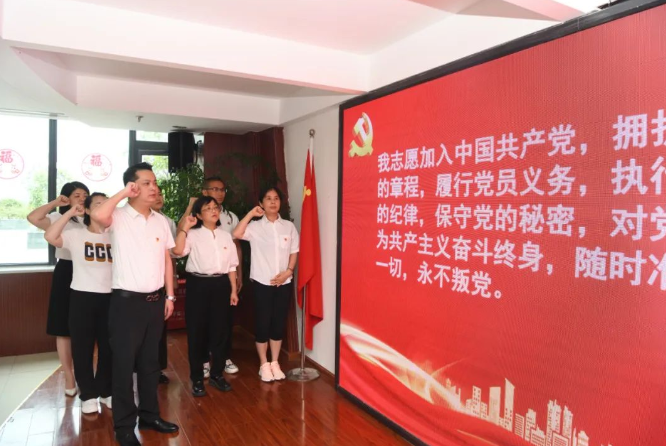 党委书记文豪带领6名齐过“政治生日”的党员进行了集中宣誓,与会党员重温了入党誓词。