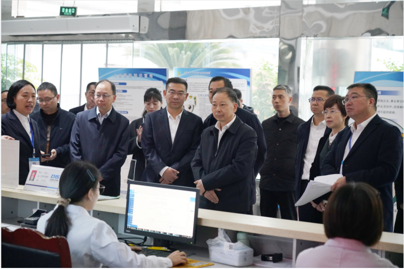邓正权局长一行实地参观了我院医保服务站,听取了张虹副院长对医保服务站设立意义及功能、人员配备及职责、运行情况等介绍,详细了解了医保经办事项下沉、OA转诊信息化审批流程等事项。邓局长对我院医保服务站工作表示高度赞誉,认为其不仅方便了患者就诊,也有利于宣传医保新政策,让患者就近享受优质、便捷、可及的医保服务。