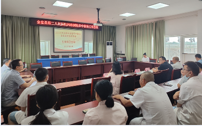 为加强卒中救治水平,完善急性心脑血管疾病协同医疗救治网络,推动建立急性心脑血管疾病分级诊疗救治体系,提升基层医院的心脑血管急危重症救治能力,6月26日,金堂县第二人民医院网络医院工作调研暨卒中纠治培训会在我院召开。市三医院神经内科主任柳华、护士长李蓉,县二医院党委副书记、院长肖祥军、副院长陈磊、神经内科主任张政、护士长黄路,我院党支部书记、院长唐朝志、副院长文宏旸、副院长李龙、副院长胡燕君及相关医务人员参加培训。