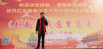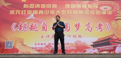 本次演讲活动由学校总务处、督导室副主任,高2021级年级管理组成员姚文金老师主持,全国著名高考励志演讲专家、重庆状元红文化传播有限公司首席演讲专家叶明粮老师主讲,高2021级全体同学及班主任1400余人全程参与。