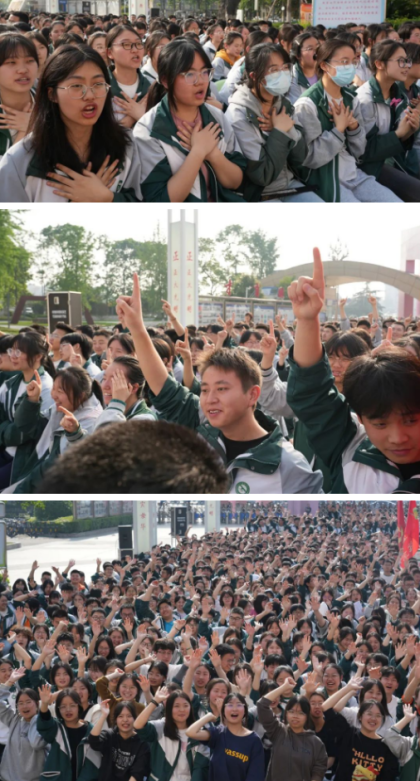 活动的最后,12班陈豪同学带领全年级宣誓,呼出了必胜的信心和决心,“风雨兼程,矢志不渝;学会吃苦,敢于拼搏;学会坚强,践行承诺;挑战极限,超越自我;高考必胜,我必成功!”