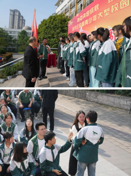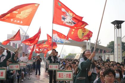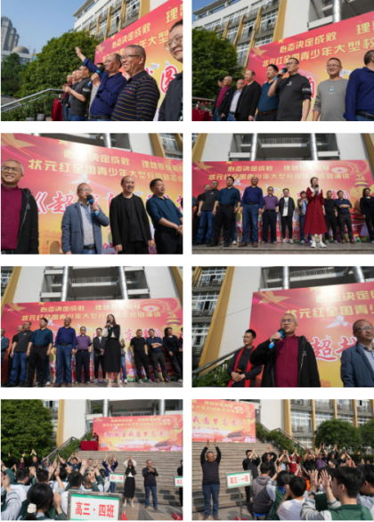 《逆战》《一路前行》等激情澎湃的歌曲合唱,所有班主任高举班旗围班跑三圈,临时抽到的1、4、19班班主任带领自班学生绕场冲刺一圈,老师与学生的热情拥抱,同学之间的牵手鼓励,将演讲活动推向一个又一个高潮。