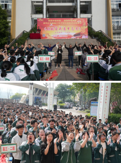 “超越自我,圆梦高考!”“高三加油,追逐梦想!”“相信相信的力量,我是最棒的!”“为中国人自豪,感恩伟大的祖国!”“请党放心,强国有我!”“科技兴国,我有力量”“鏖战33天,高考必胜!”“向着高考前进,向着未来前进”……叶老师紧扣冲刺,以激情为源,以奋斗为本,旁征博引,震撼和点燃了同学们的内心激情。