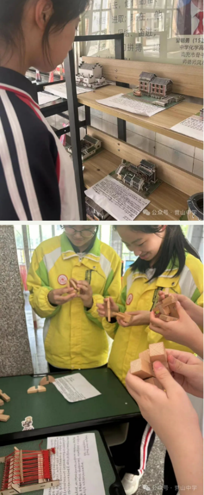 在体验区,同学们体验了造纸术、活字印刷术、织布机、鲁班锁等传统工艺,增强了他们传承传统文化、建设科技强国的责任感、使命感。