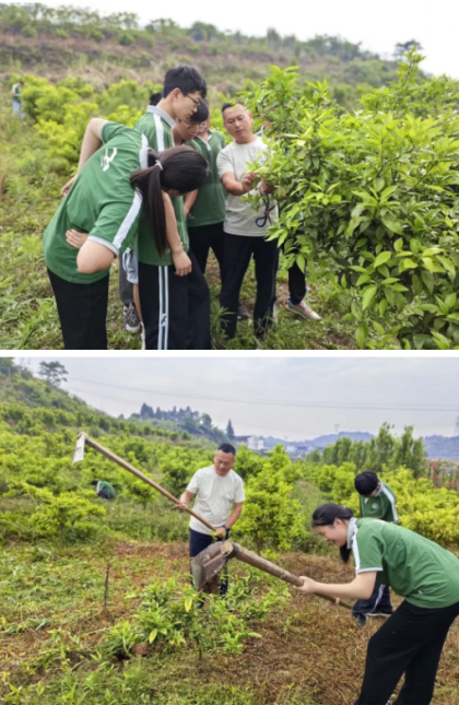 在劳动活动开始前,学工处副主任冯雪峰、教官刘兵根据基地的具体地形地貌及潜在的安全隐患作了警醒提示,四川瑞达顺河农业开发有限公司负责人王四春先生为同学们讲解了柑橘疏果、摘枝的目的和技术要领,花架上枝条的有序固定,锄头、铁锹、果剪的使用方法等,随后还就每一步操作进行了示范。同学们听得全神贯注,看得目不转睛,个个摩拳擦掌,跃跃欲试。