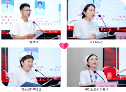 颁奖后,ICU护士岳林锋、呼吸与危重症医学科护士冯丹作为优秀护士代表,内分泌科护士长周冰含作为优秀护士长代表、甲乳肛肠科护士长邢春华代表工龄满30年的护士代表分别发表了获奖感言。讲述了他们在平凡的护理道路上的耕耘不息,他们也是全院几百名护理人员的缩影,在优质护理道路上,奉献着光和热,深刻诠释着南丁格尔的誓言。