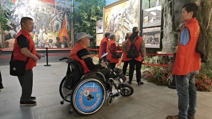 活动当天,在助残志愿者的协助下,50余位脊髓损伤者分乘大巴和小车顺利到达朱德故里景区,走进朱德故居纪念馆,伤友们便感受到浓浓的“红色氛围”。一幅幅生动的历史照片、一件件斑驳沧桑的实物、一篇篇详实的文献资料,触动着每名伤友的心弦,深切感悟革命先辈坚定的共产主义信仰。