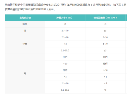胃间质瘤是一种具有潜在恶性倾向的侵袭性肿瘤。对于其恶性程度的评估,目前较经典的方法是根据肿瘤大小以及有丝分裂指数(MI)来评估。如肿瘤直径<2cm,MI<5/50高倍视野则认为是良性的,手术切除是治疗胃间质瘤最有效的方法。