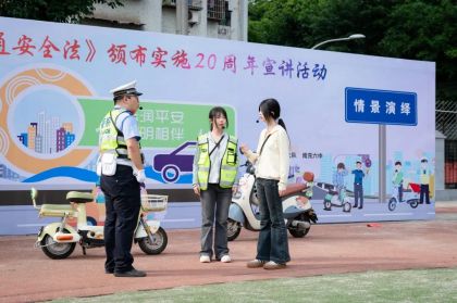 为庆祝《道路交通安全法》颁布实施20周年,5月31日下午,南充公安交警直属一大队联合南充六中以“法润平安 文明相伴”为主题,举办了一场别开生面的普法宣讲活动。