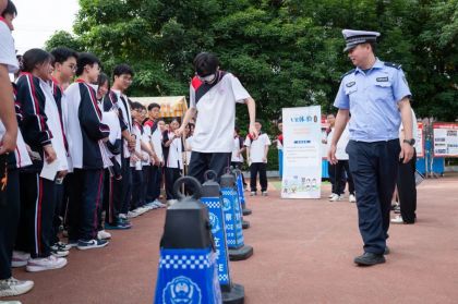 警用装备展示区也围满了好奇的同学们,他们仔细观察着交警蜀黍们的日常工作装备,脸上写满了对交警工作的敬意与好奇。