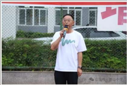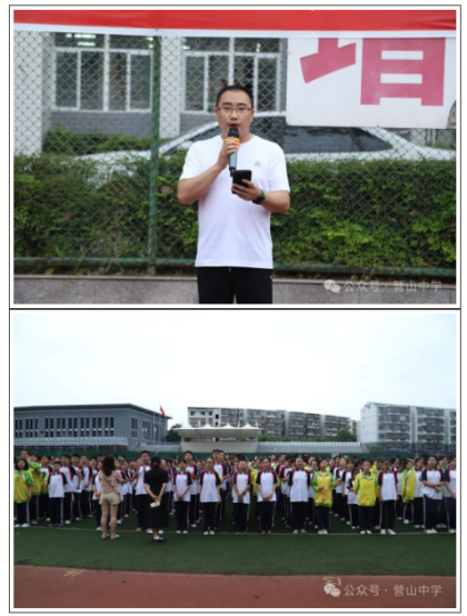 紧接着,营山中学党委委员刘崇禹宣讲了活动的意义,他说,“今天我们齐聚一堂,举行这场别开生面的数学计算接力赛。数学乃智慧之基石,它能够培育我们的逻辑思维与解决问题之能力。我衷心希望通过此次赛事,大家能深切体悟到数学的魅力与乐趣,亦能在竞赛中学会团队合作与奋力拼搏。期待大家皆能赛出风格,赛出水平!”他还表示:“我们数学文化周涵盖数学文化展览、数学知识讲座、数学趣味竞赛、数学电影展播、数学实践活动、数学文化主题班会;而此次计算接力赛是我们初中部第一届数学文化周开启的第一个项目,我们今后要高质量地举办好第二届、第三届……数学文化周。”刘委员的讲话高屋建瓴、铿锵有力,赢得了同学们如雷般的掌声。